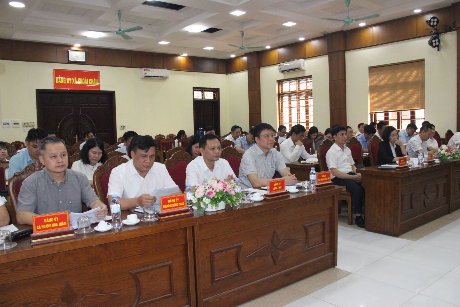 Đồng chí Bùi Huy Cường, Ủy viên BCH ĐB tỉnh, Bí thư Đảng ủy, Chủ tịch HĐND xã Khoái Châu phát biểu tại Hội nghị giao ban