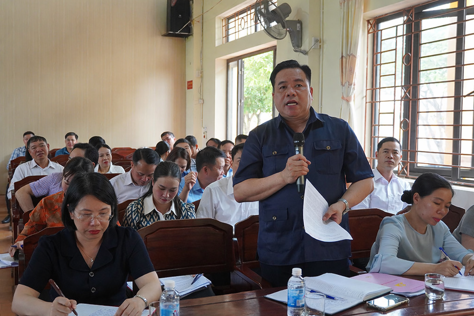Đồng chí Phan Văn Dương, Bí thư Đảng ủy, Chủ tịch HĐND xã Lê Lợi phát biểu tại Hội nghị